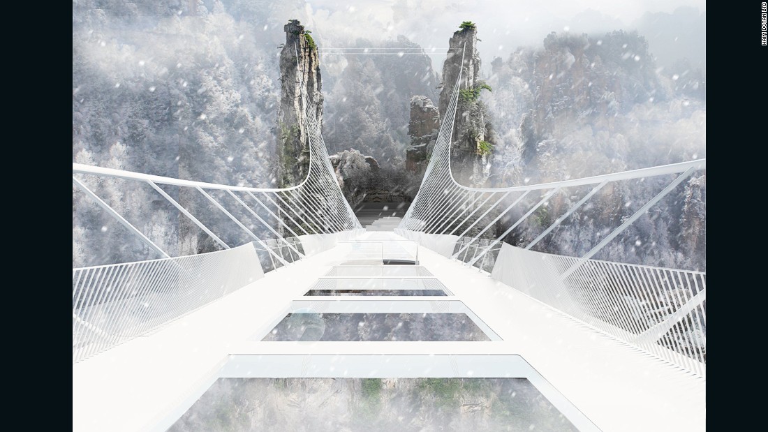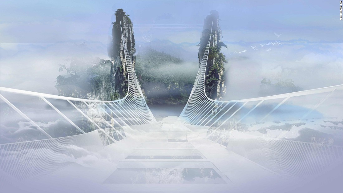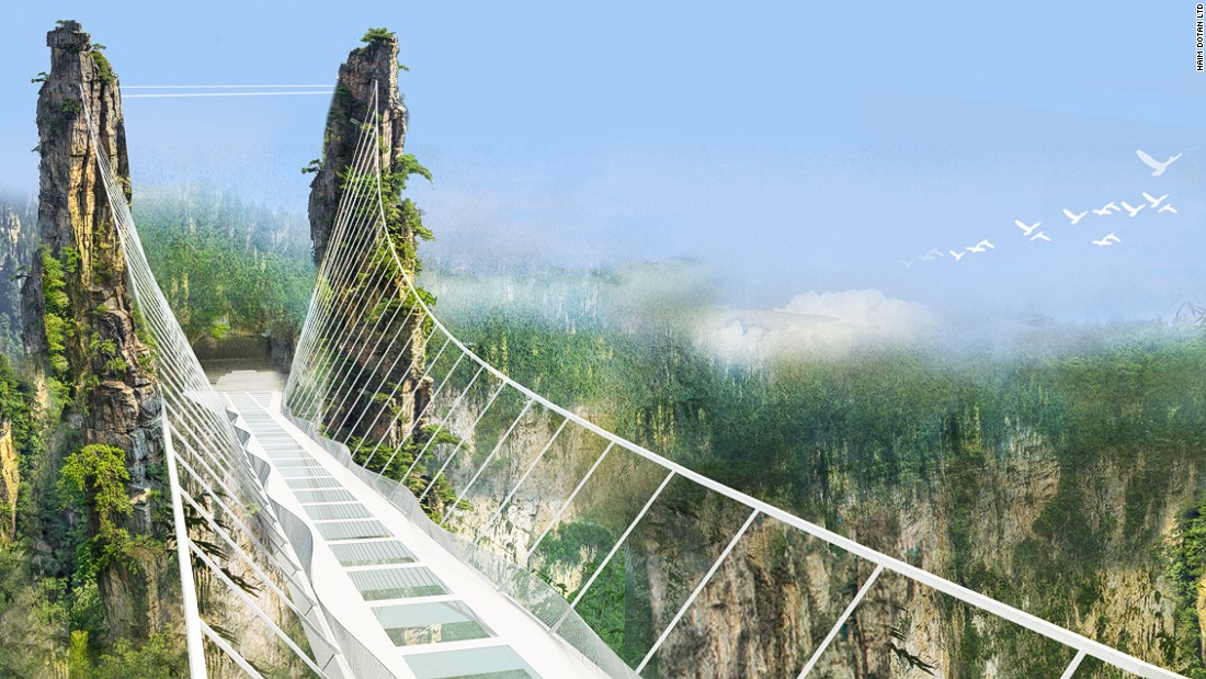 காற்றில் கூட மாளிகை கட்டும் இவர்களிற்கு கண்ணாடியில் பாலம் கட்டுவதா பெரிய வேலை ? சீனாவின் ஹுனான் மாகாணத்தில் ஷன்க்ஜாஜீன் வனப்பு மிக்க ரம்மிய மலைத்தொடர் இடையே இந்த பாலம் அமைக்கப்பட்டு எதிர்வரும் ஜூலை மாதம் திறந்து வைக்கப்படவுள்ளது